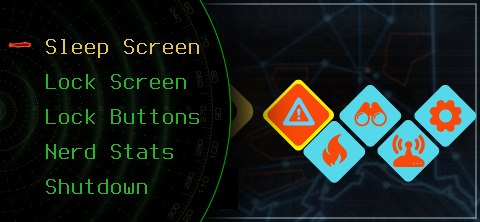 The power menu allows you do perform a clean shutdown, lock the device, and enable some extra statistics on the UX engine.